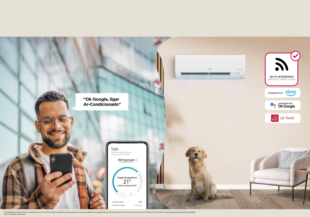 Na prática, o ar condicionado LG Dual Inverter 12000 BTUs trabalha de forma inteligente, sem ligar e desligar o tempo todo, o que gera economia real.